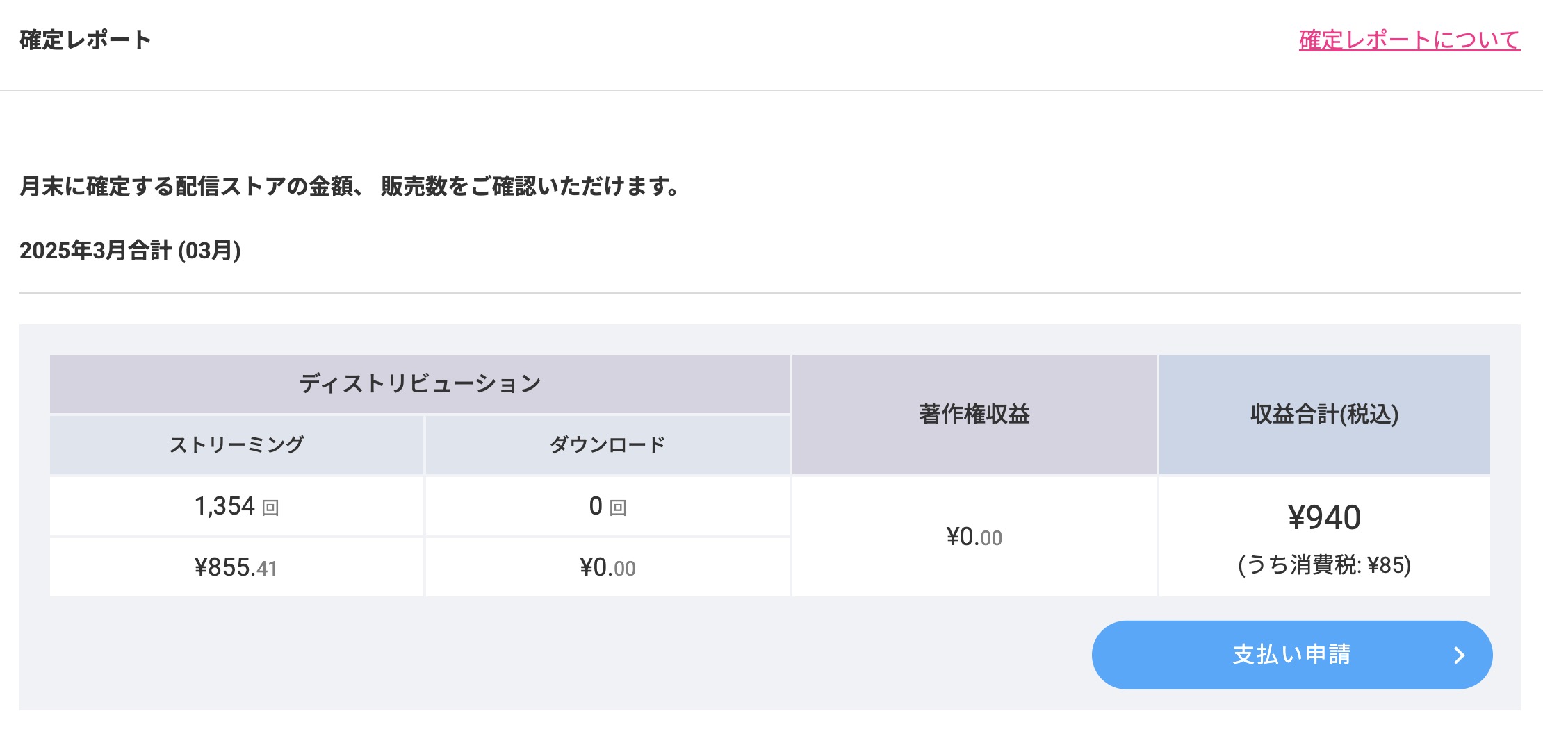 また、TikTocやFacebook(インスタ)などにも、楽曲は配信されているはずなのですが、それらに関する収益情報は一切ありません。